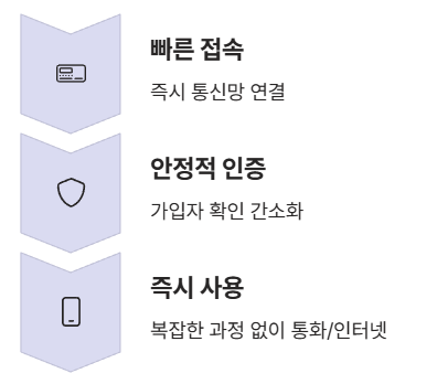 "이 사용자는 인증된 가입자입니다." 라는 신호를 통신망에 빠르게 보내고, 바로 통화를 하거나 인터넷을 사용할 수 있게 됩니다.