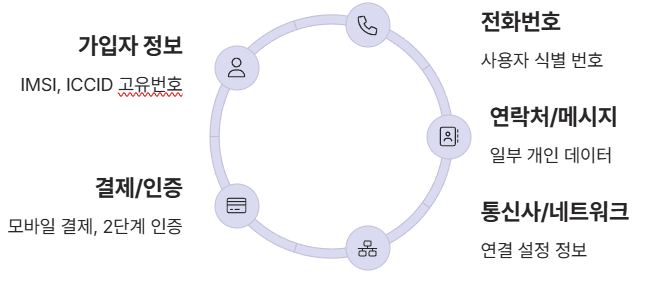 어떤 통신사를 이용하는지, 어떤 주파수를 사용할지 같은 네트워크 연결 정보가 담겨 있습니다. - 결제 및 인증 정보