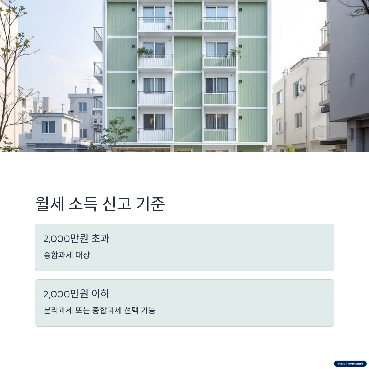 부동산 임대소득은 연간 2,000만 원을 초과하는 경우 종합과세 대상입니다. 2,000만 원 이하의 임대소득은 ‘분리과세’ 또는 ‘종합과세’ 중 선택할 수 있으며, 선택에 따라 납부 세액이 달라질 수 있습니다.